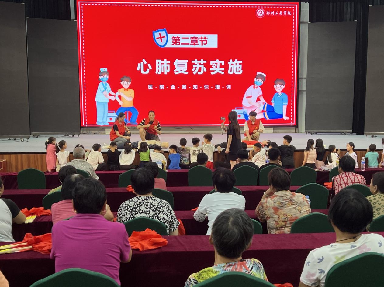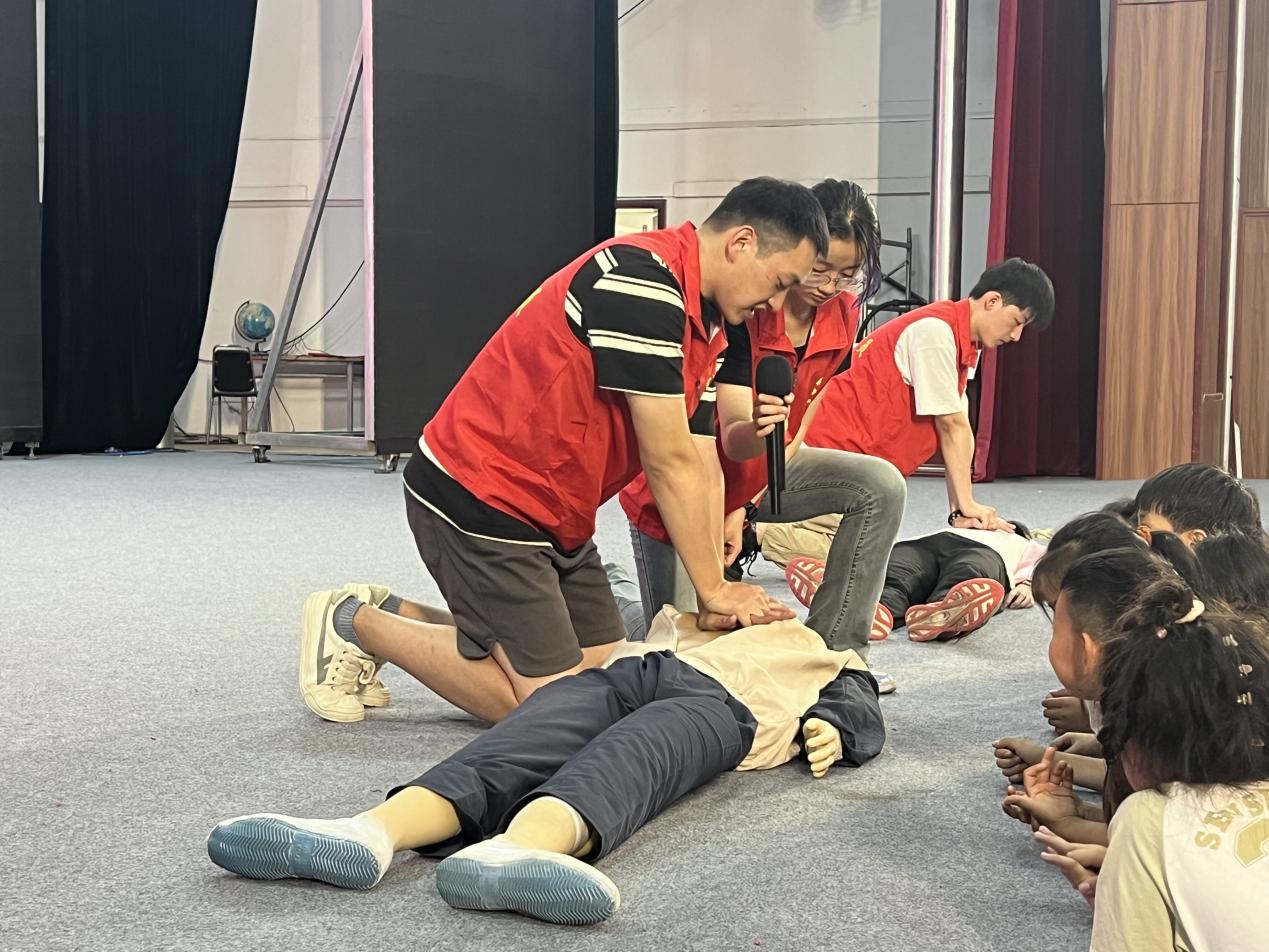 6月29日,304永利三下乡“青春挺膺先锋服务队”在新郑市桃源新村大礼堂举行“心肺复苏等急救技能培训”宣讲活动。活动由退伍大学生邹钰淇带队。